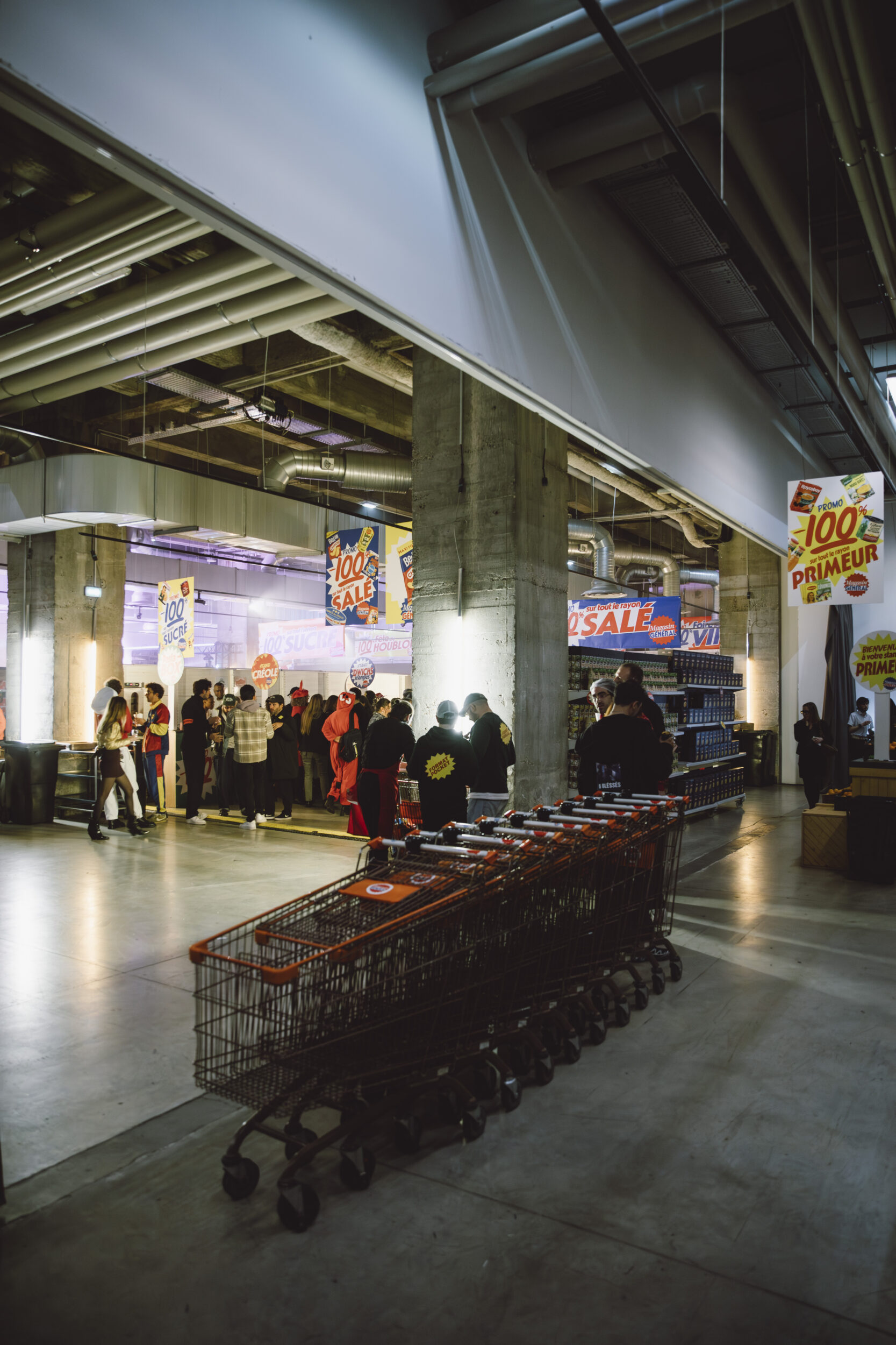 Production de la soirée interne de BETC dans leurs locaux aux Magasins Généraux, sur la thématique « supermarket ».